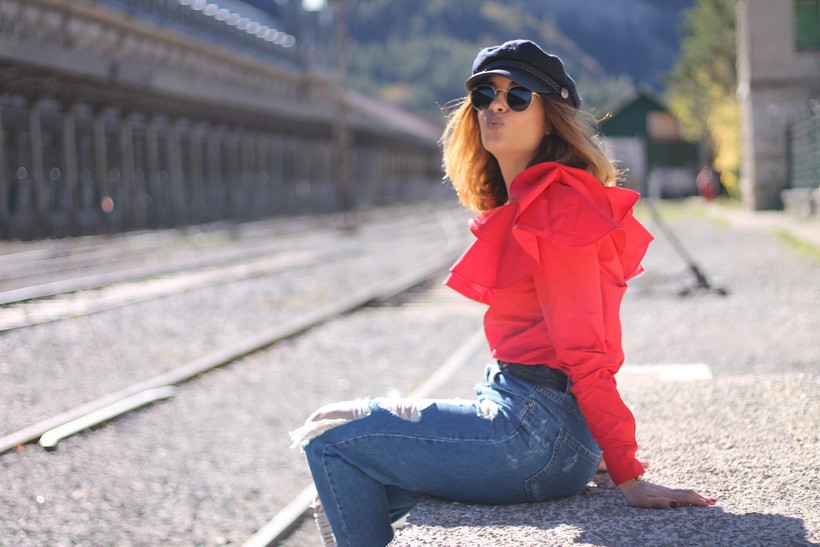 Para ese día de escursión y explorar, opté por un look muy cómodo, con tejanos y con una blusita un tanto especial. Uno de mis inseparables complementos la baker boy o gorrita marinera.